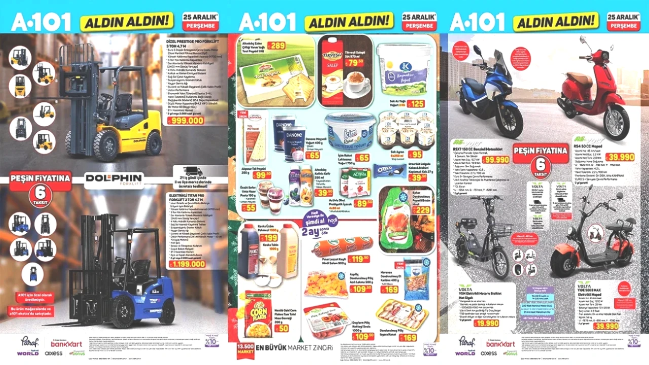 A101’in 16 Nisan 2026 tarihli "Aldın Aldın" kataloğunda, elektrikli ulaşım ürünleri dikkat çekiyor. Volta EV2 elektrikli aracı, VOLTA elektrikli bisiklet ve moped modelleri gibi seçenekler satışa sunuldu.