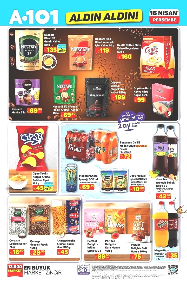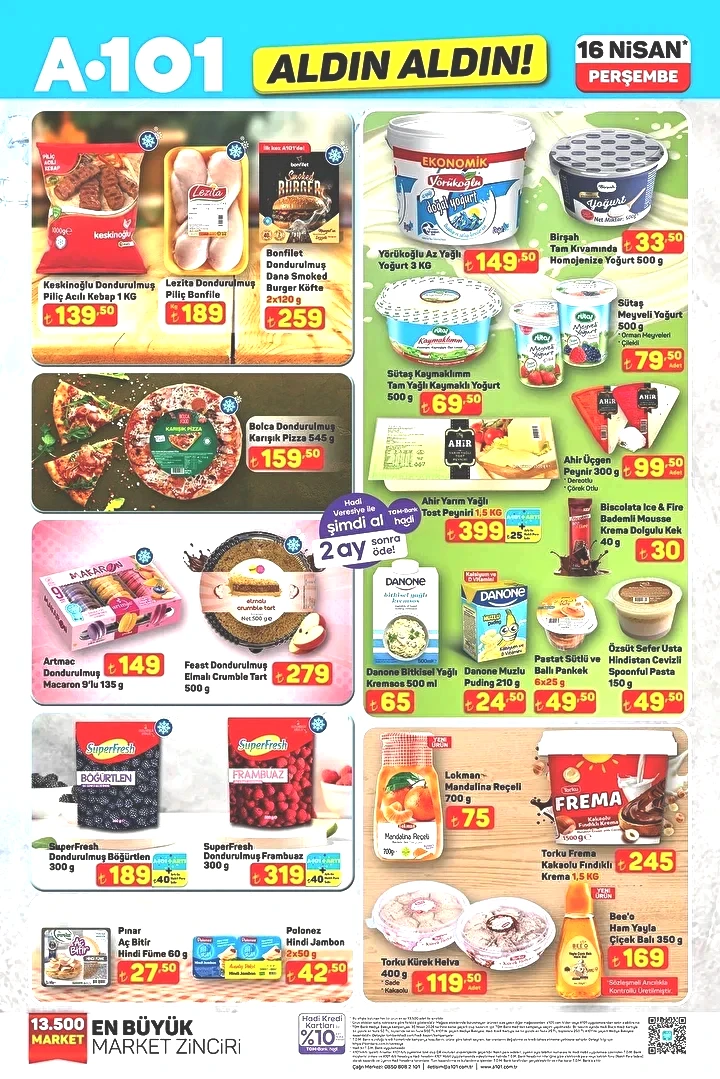 A101 16 Nisan 2026 Aldın Aldın kataloğu tanıtıldı. Bu hafta teknoloji ürünleri, beyaz eşya, buzdolabı, çamaşır makinesi, elektrikli araçlar, kamp malzemeleri ve oyuncaklar rafta sizi bekliyor. Kampanya Perşembe günü başlayacak, kaçırmayın!